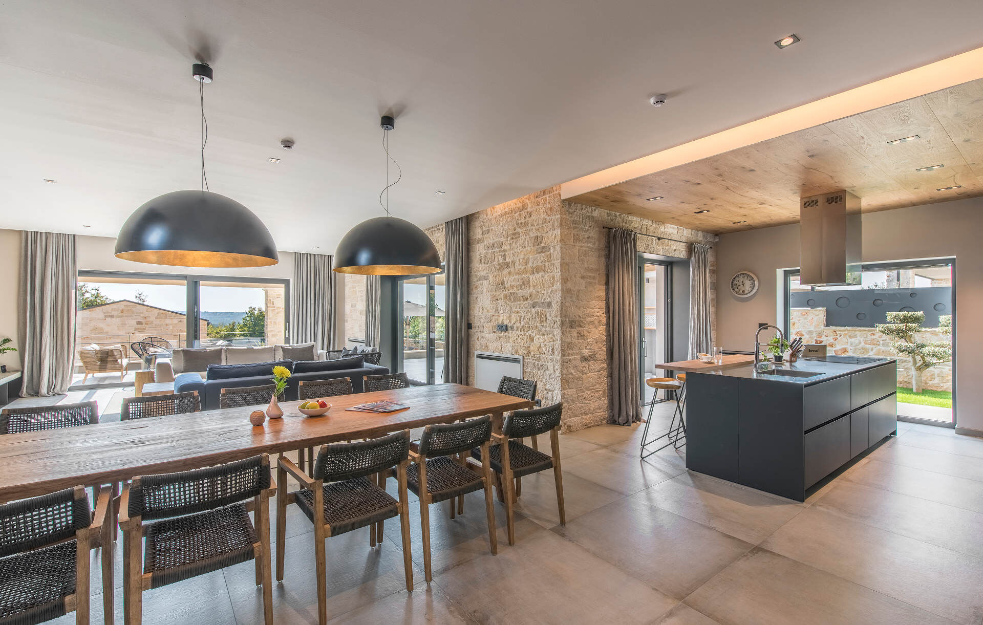 Typische istrische Architektur gepaart mit Moderne - Holz - Stein - Stahl - authentisch und exklusiv, mit perfekter Symbiose von Farbe und Form.